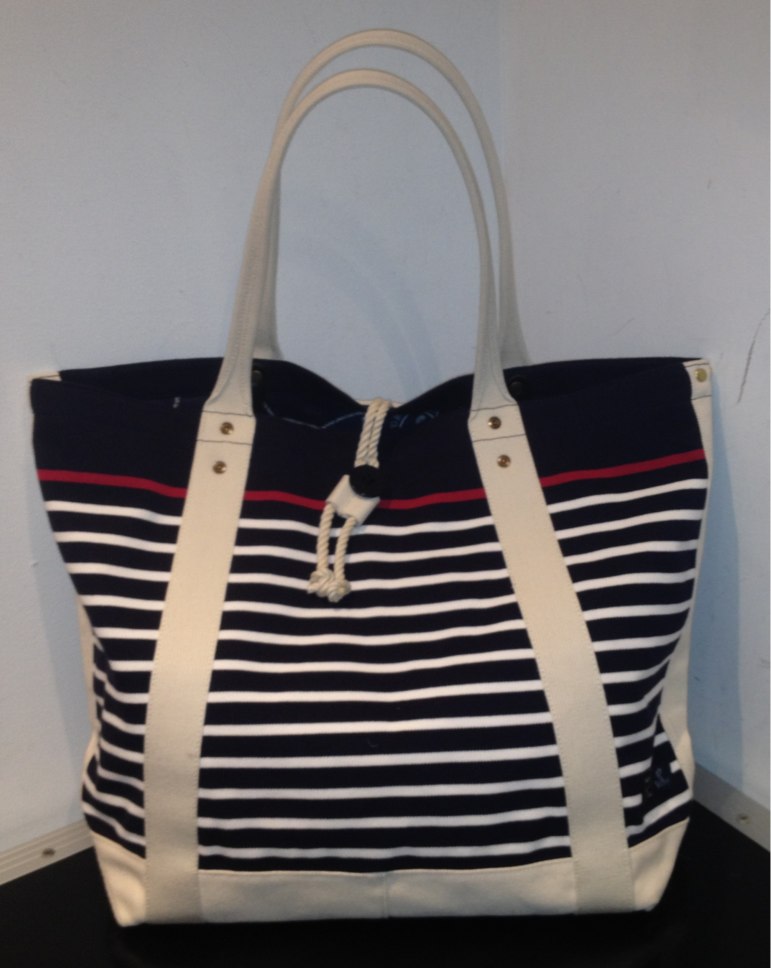 容量も大きく、ボーダーのラインが赤とネイビーとゆう最強の配色(個人的に)になっております。