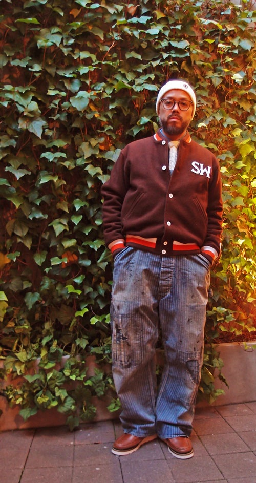 僕はSWBPの、MELTON VARSITY JACKETのワインレッド色をGETしました!