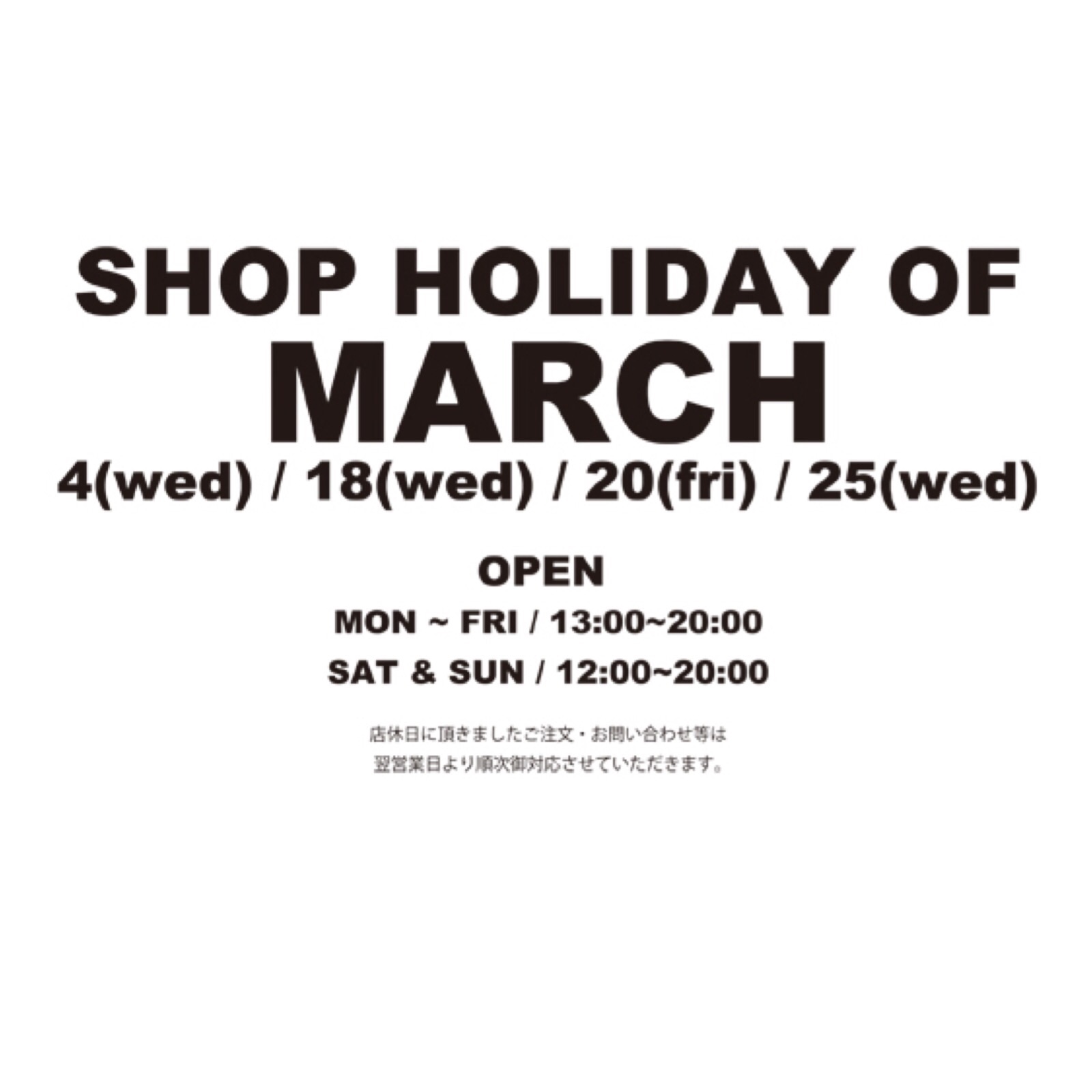 今月の店休日を