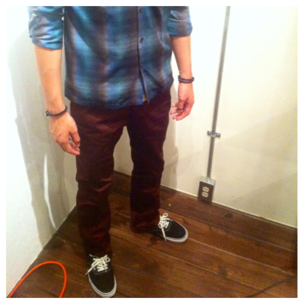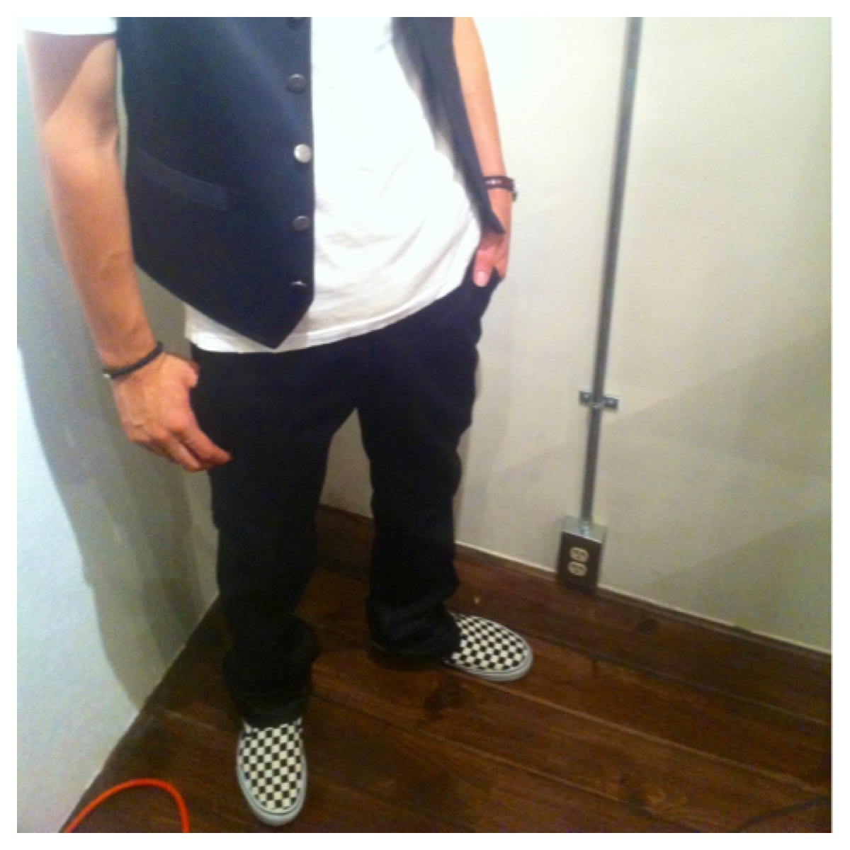 細いパンツでロックテイストな合わせ